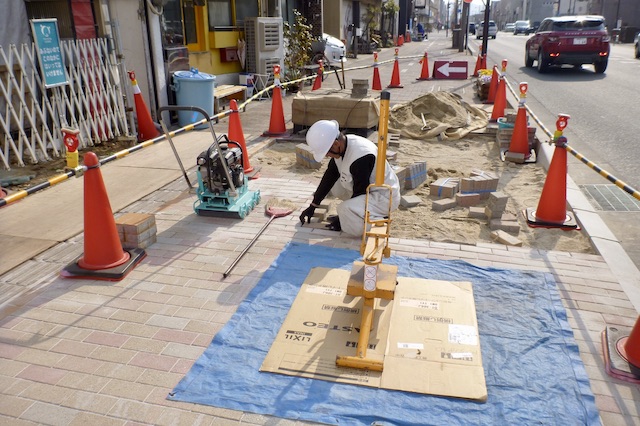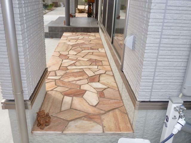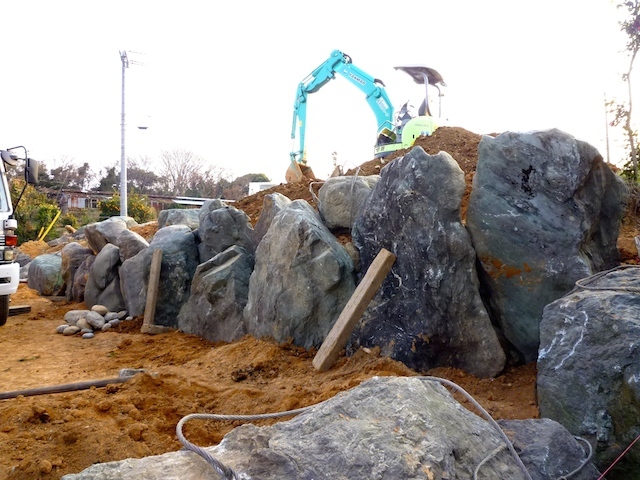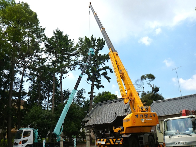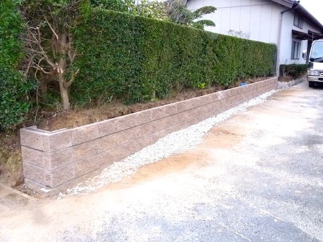 神社での枝下ろし 造園工事 マキの木の枝下げ マキの木の段作り 庭のリフォーム 小規模スペースにも 花壇と階段 表 新規ブロック積み 境界ブロック積み、フェンス設置 地の神様の設置箇所 石張り工事 石畳のアプローチ 石組み工事 路盤工事 松の剪定