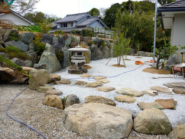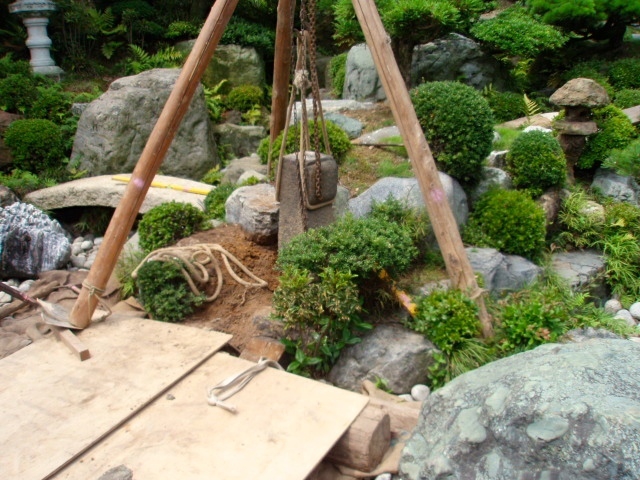 植栽 高所での剪定作業 和風の庭 和風庭園 花壇と階段 裏 ブロックリフォームとフェンス設置 灯籠の修繕 庭園工事 根巻き ツツジの剪定 移植 石張り完成 石畳のアプローチ2 石組み工事2 松の剪定2 防草シート設置